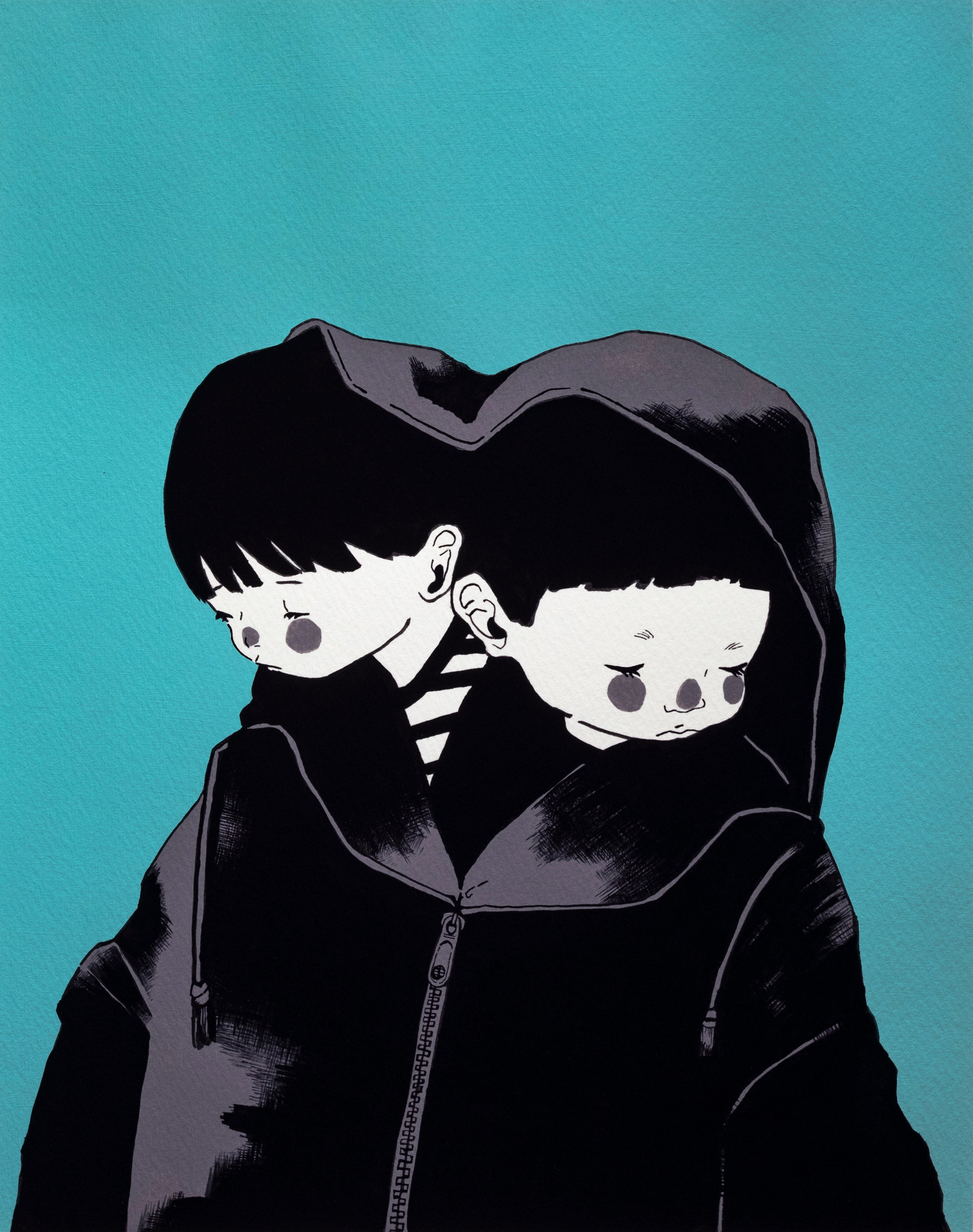 本企画では、ヤマシタ作品の中でも印象の強い「子供」の描写に注目し、子供服のファッション誌のカットのようなスタイルでヤマシタのシュールでかわいらしい世界観を存分に出力しております。