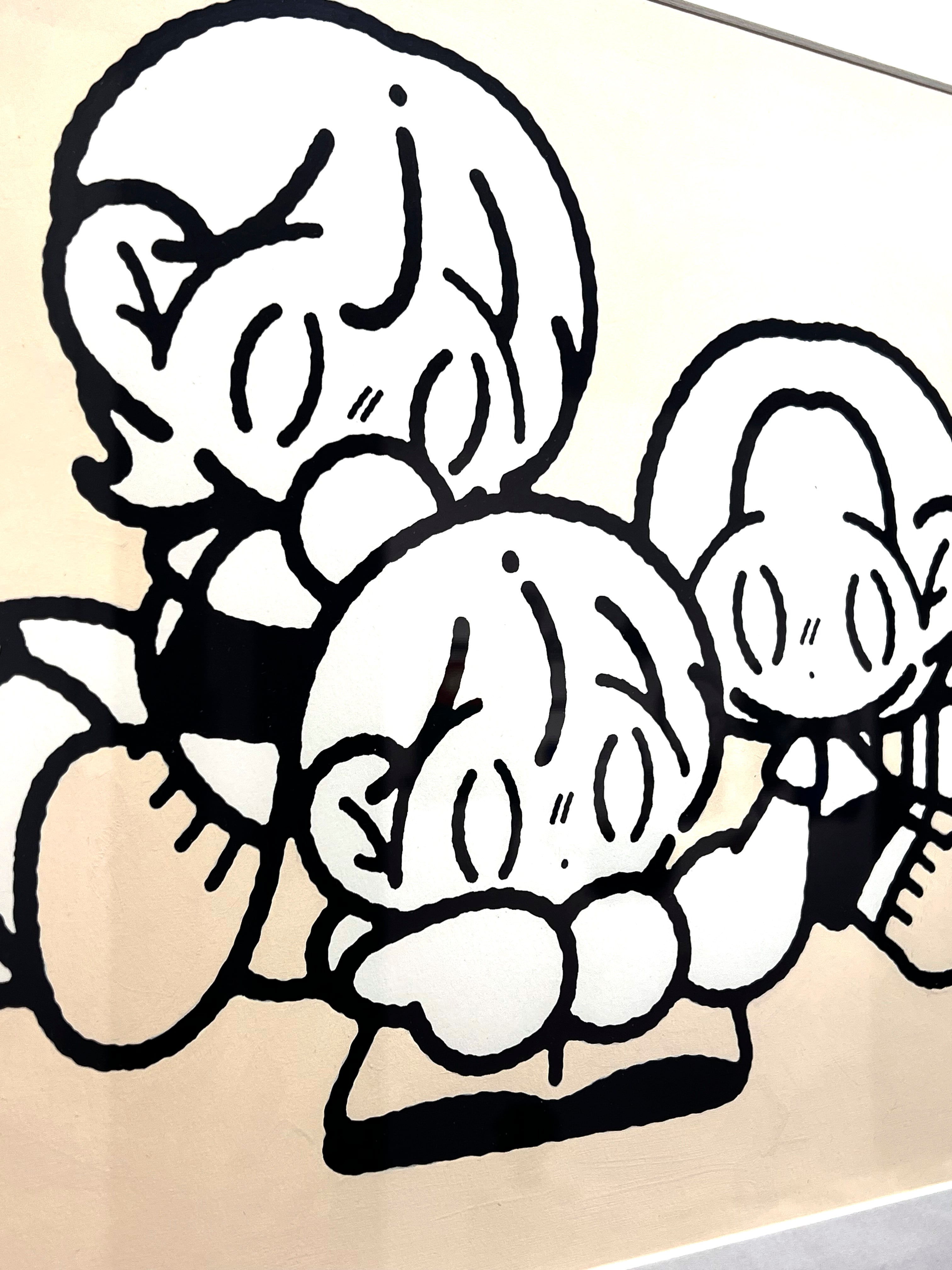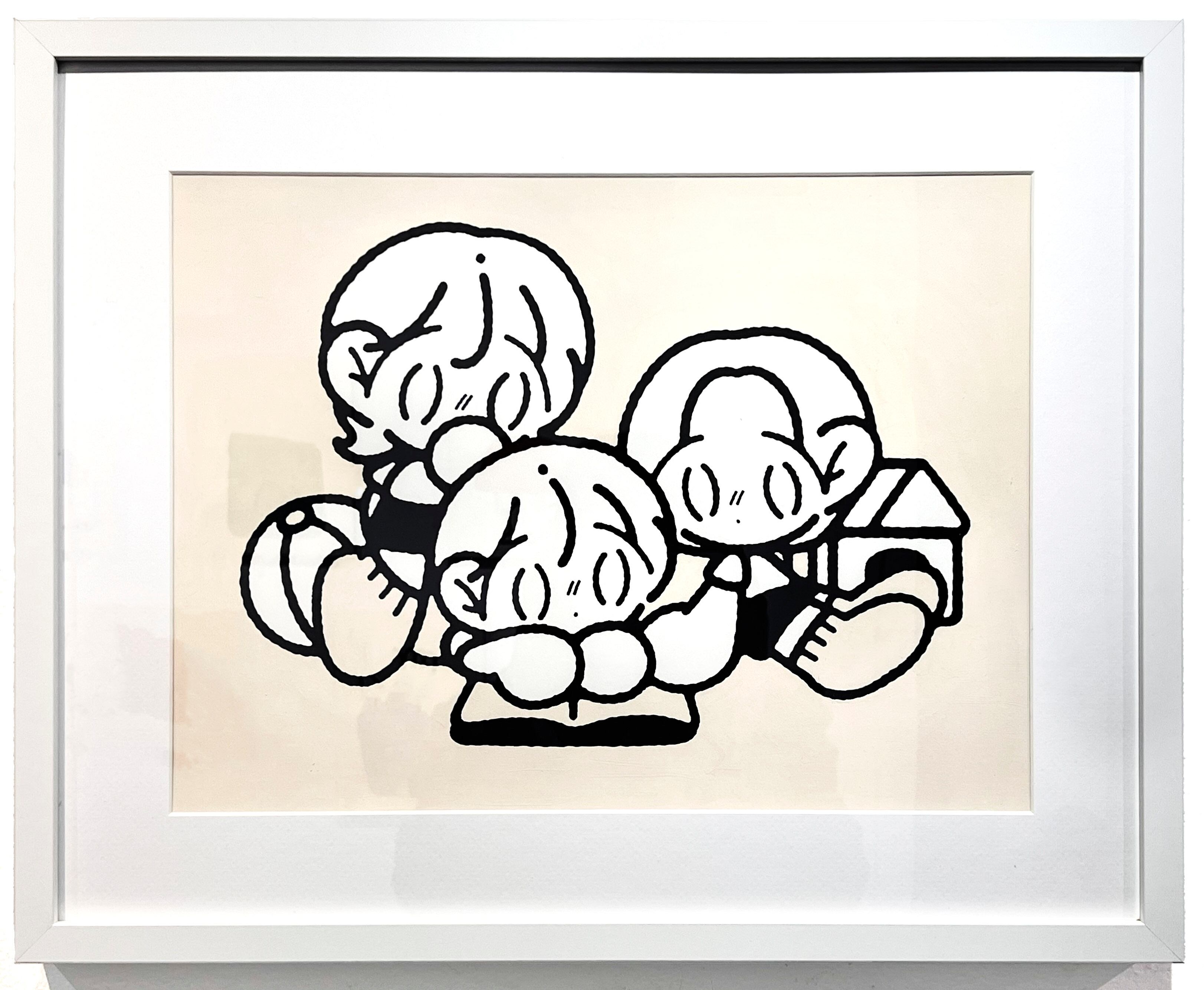 カトウの描くデフォルメは時を重ねるごとに少しずつアップデートを繰り返し、特に人物デザインは二頭身に迫るほどですが、特徴的な顔の描き方とシルエットによって無二の画面を生み出しています。